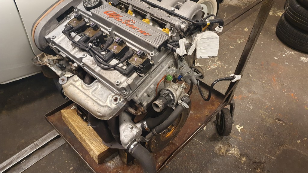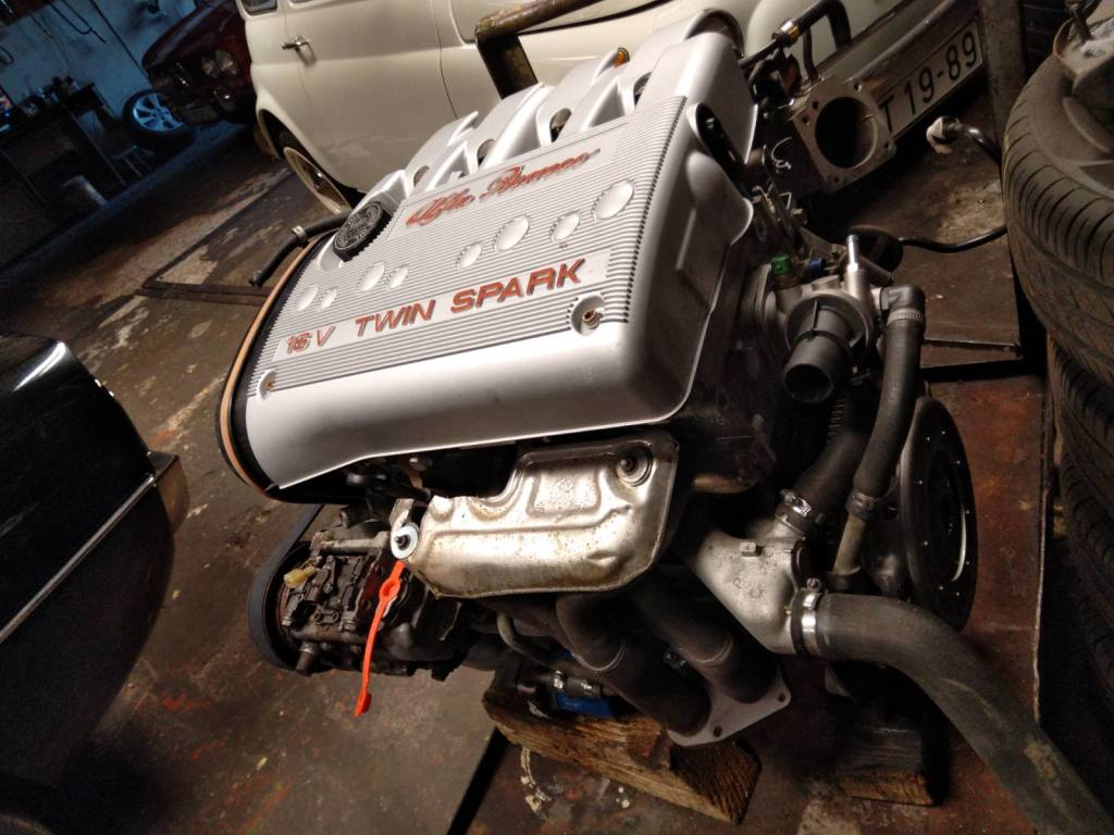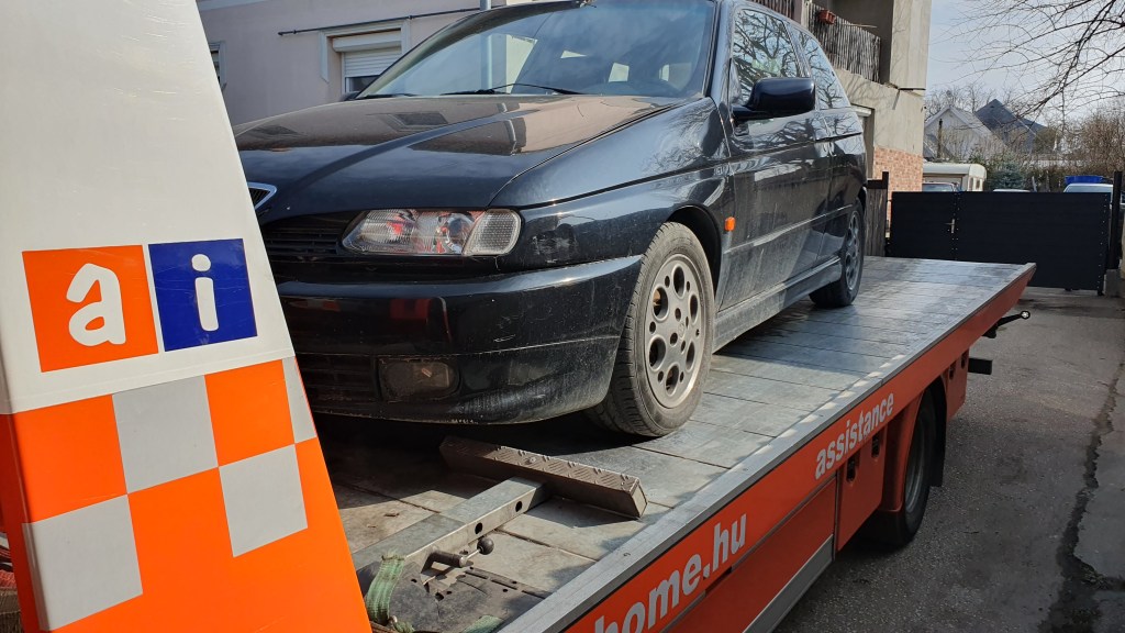 Átvittem az autót az Alfáriumba. Ügyes kics csapat, nemzetközi szinten is elismertek, Indul a motorcsere. Egyik motor ki, másik motor ki, lássuk…