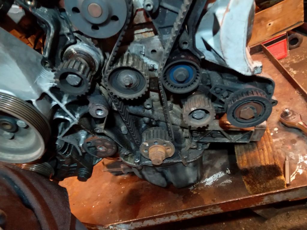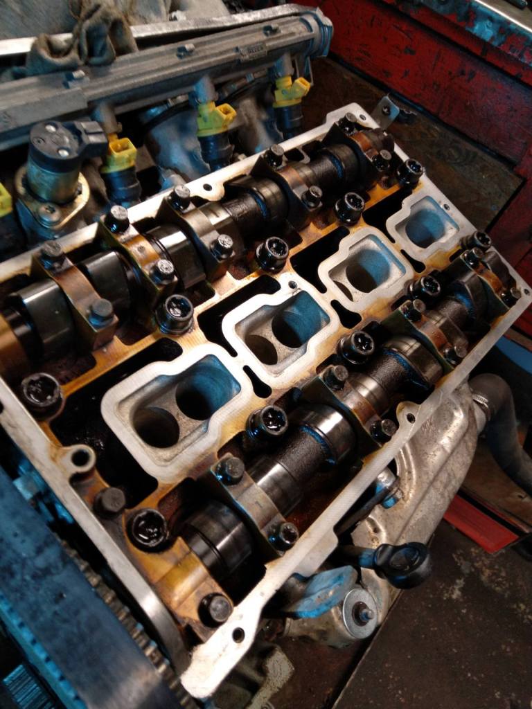 Úgy néz ki, a fekete motorja tényleg menthetetlen. Koksz, lerakódások, főtengelycsapágy gatya. A bordé viszont jó, azt tesszük rendbe. Bontás, összes tömítés csere, szűrők, gyertyák, vezérlés, új vezérlésmódosítóval. Jól lesz ez, jó lesz ez.