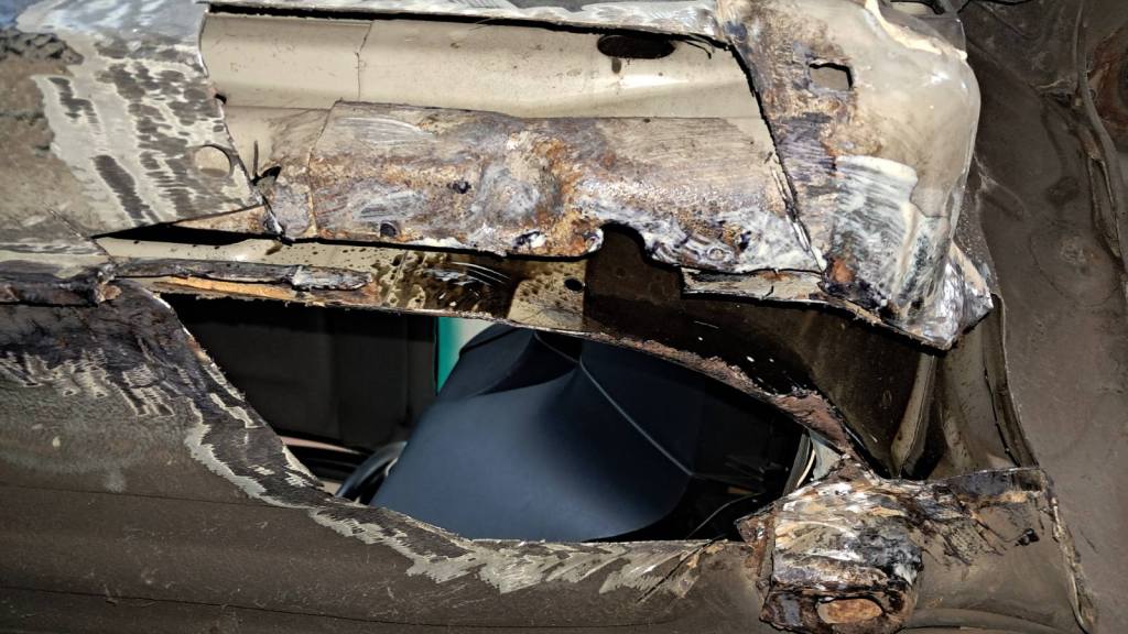 Eszméletlen mennyiségű rozsdát találtunk, hatalmas darab lemezeket kell kivágnunk, megszüntetnük, lecsiszolnunk, darabolnunk. Motortér, beltér, alja, küszöbök… mindenhol is! 3 hónapig tartott a rozsdátlanítás, pedig folyamatosan